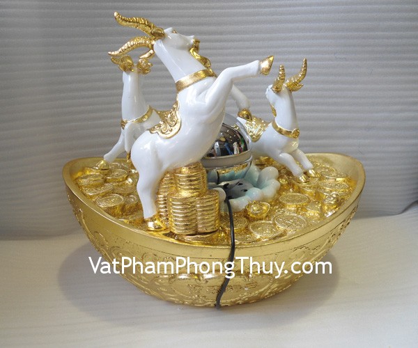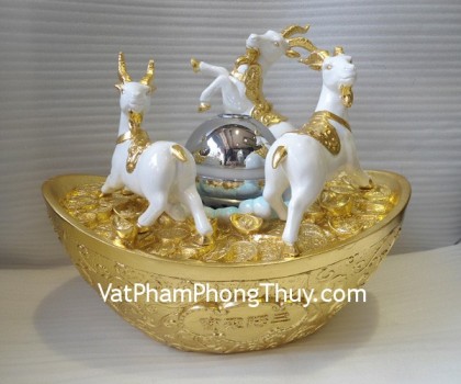+ Chất liệu và hoàn thiện: Tam dương (ba con dê) trắng bên bồn tụ bảo, có đèn, bột đá màu (tại Việt Nam)