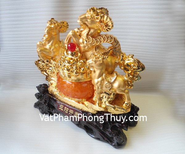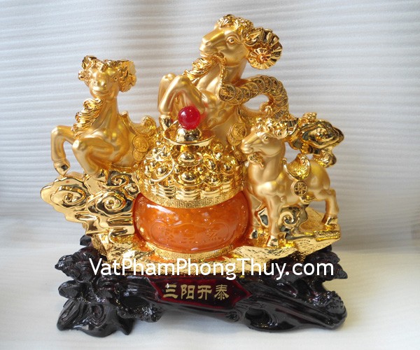 + Chất liệu và hoàn thiện: Tam dương (ba con dê) vàng trung, bột đá mạ vàng non (tại Việt Nam)