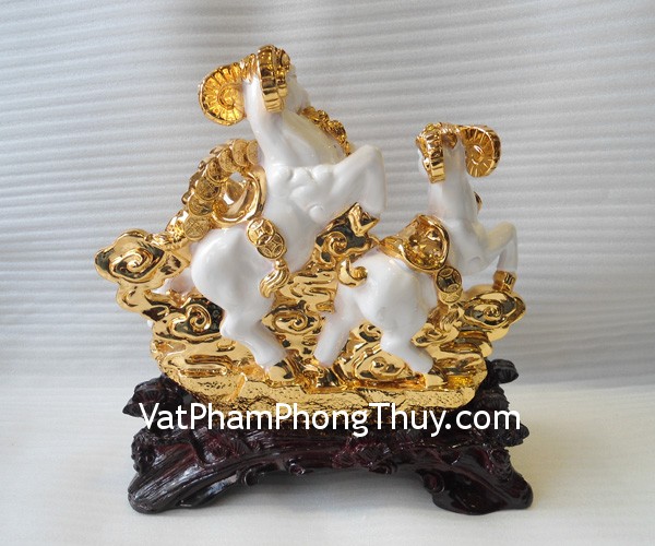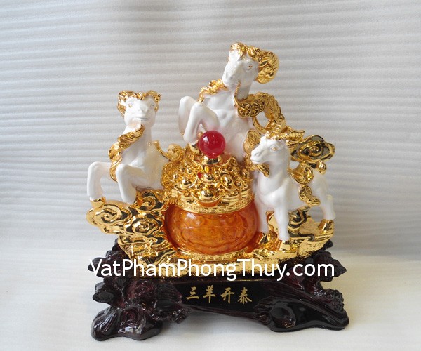 + Chất liệu và hoàn thiện: Tam dương (ba con dê) trắng nhỏ, bột đá (tại Việt Nam)