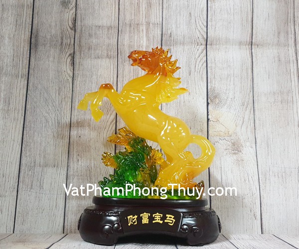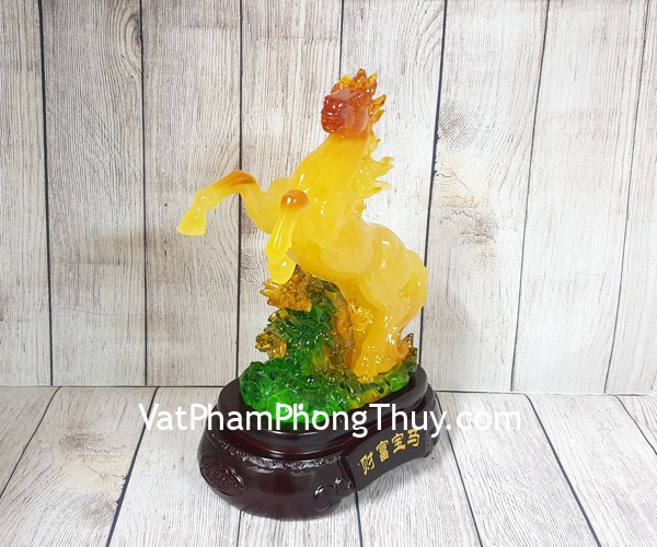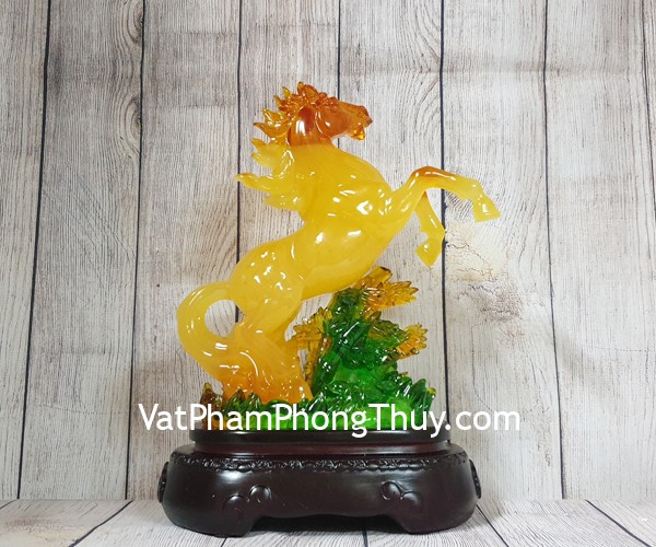+ Chất liệu và hoàn thiện: Tượng ngựa cam vàng lưu ly trên trúc ngọc xanh, hàng bột đá màu cao cấp (tại Việt Nam).
