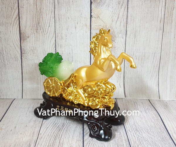 + Ý nghĩa: Mã Thượng Phát Tài- ngựa là biểu tượng của sự kiên nhẫn, bền bỉ, lâu dài, là con vật mang lại sự may mắn, tài lộc. Ngựa phong thủy đem lại nguồn tài lộc thịnh vượng, sự phát đạt trong kinh doanh, sự nhanh nhạy và tăng tiến tiền tài, khiến những công việc dự định sẽ nhanh chóng hoàn thành hơn dự kiến và đạt kết quả cao hơn mong muốn. Tượng bắp cải phong thủy là chiếc túi sinh tài lộc, đi kèm với ngựa mang ý nghĩa tiền về đầy ắp may mắn.