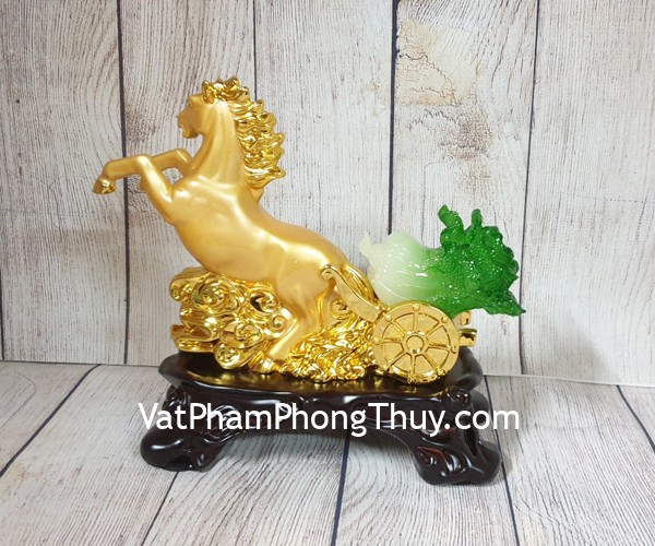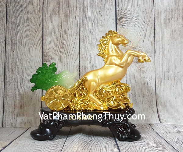 + Chất liệu và hoàn thiện: Tượng ngựa vàng kéo xe vàng bắp cải xanh, hàng bột đá cao cấp (tại Việt Nam).