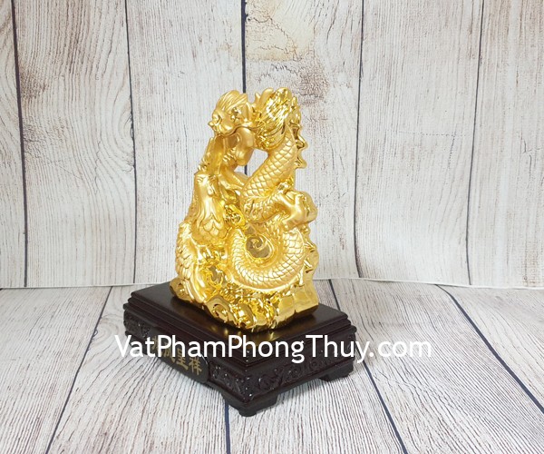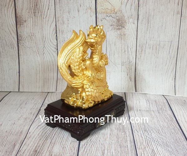 + Chất liệu và hoàn thiện: Tượng long phụng vàng size nhỏ trên đế gỗ, bột đá mạ vàng cao cấp (tại Việt Nam)