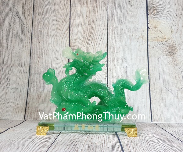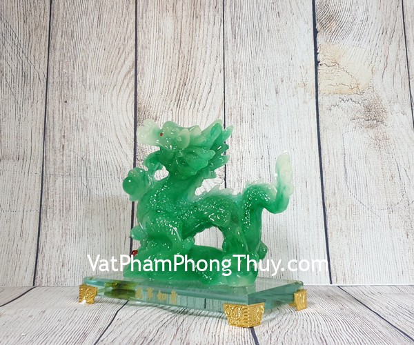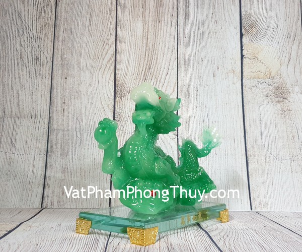 + Chất liệu và hoàn thiện: Tượng rồng xanh trên gậy như ý đế thủy tinh, hàng bột đá màu cao cấp (tại Việt Nam).