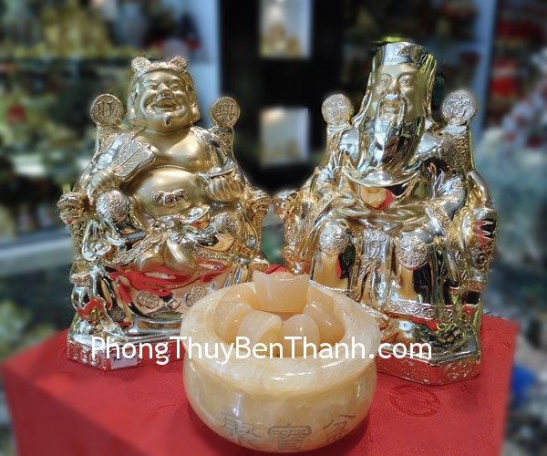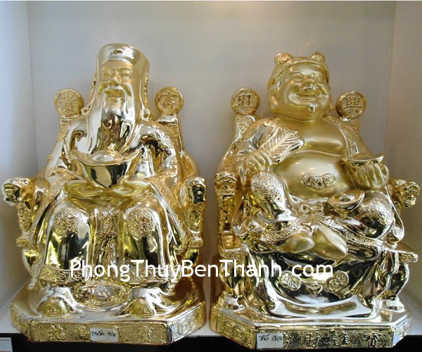 + Chất liệu và hoàn thiện: Thần tài thổ địa bằng bột đá mạ vàng non (tại Việt Nam)
