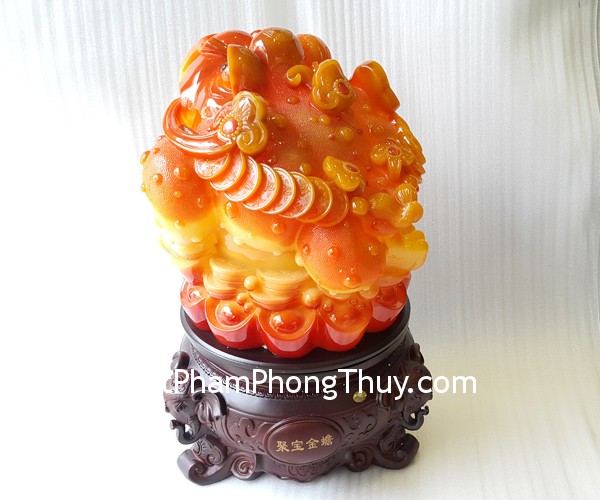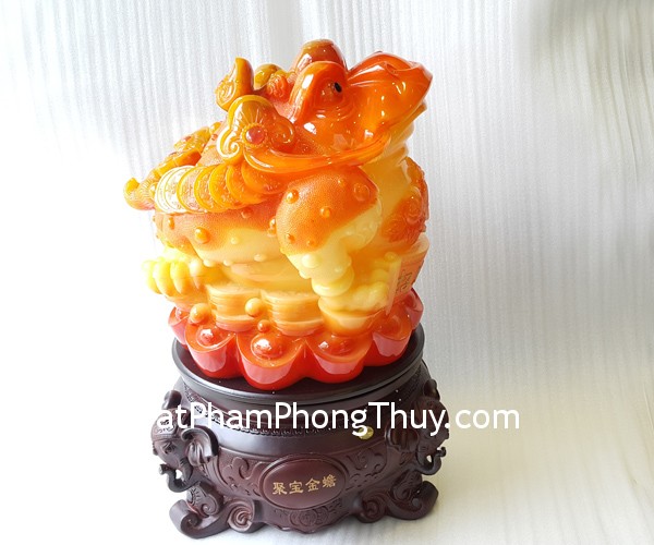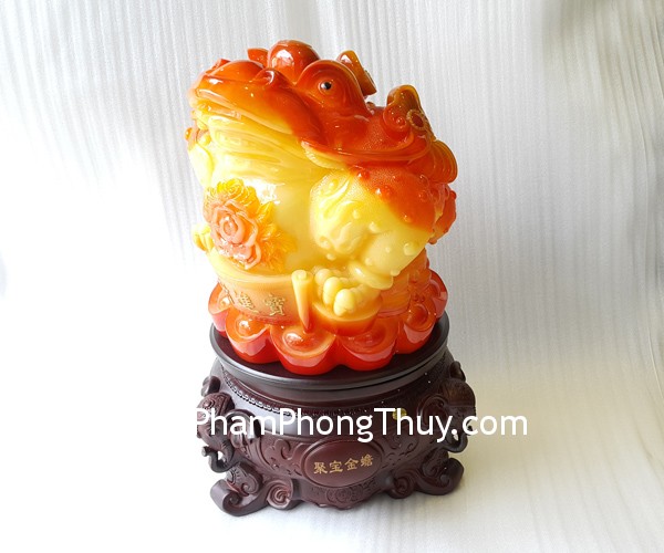 + Chất liệu và hoàn thiện: Thiềm thừ (cóc ba chân) bột đá màu, dạng xoay trên đế gỗ (tại Việt Nam)
