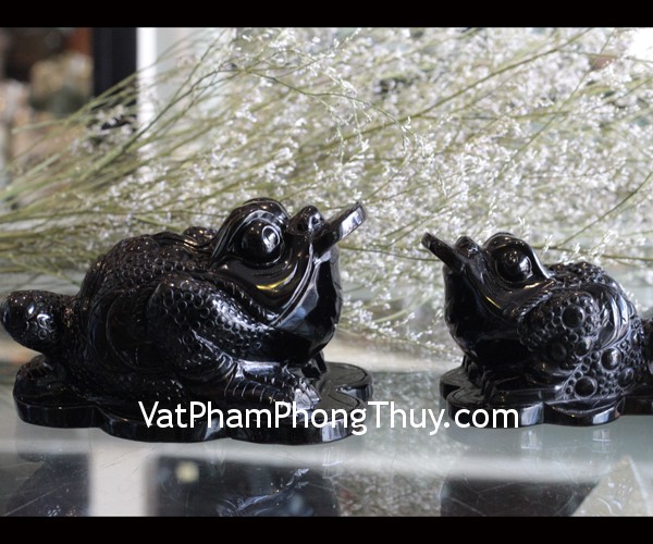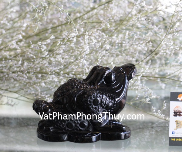 + Chất liệu và hoàn thiện: Thiềm thừ, cóc ba chân đá thạch anh đen (hắc ngà, onyx) 4 tấc, (tại Việt Nam).