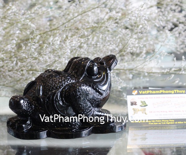 + Chất liệu và hoàn thiện: Thiềm thừ, cóc ba chân đá thạch anh đen (hắc ngà, onyx) 5 tấc, (tại Việt Nam).