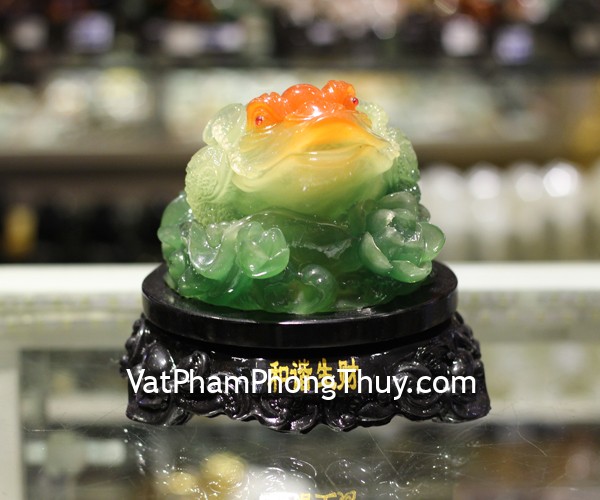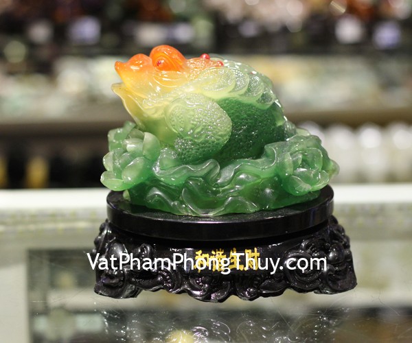 + Chất liệu và hoàn thiện: Thiềm thừ (cóc ba chân) ngồi trên hoa mẫu đơn, bột đá màu (tại Việt Nam).
