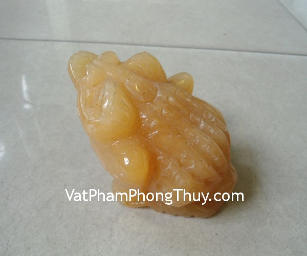 + Chất liệu và hoàn thiện: Thiềm thừ (cóc ba chân) đá Hoàng Long vàng (tại Việt Nam).