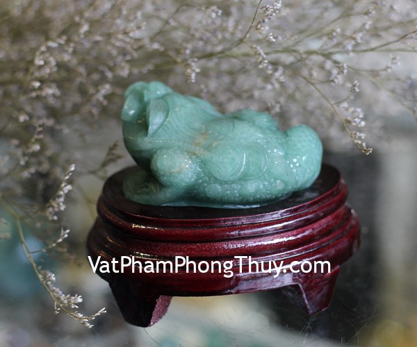 + Chất liệu và hoàn thiện: Thiềm thừ, cóc ba chân đá ngọc Đông Linh xanh (thạch anh xanh, India), Việt Nam.