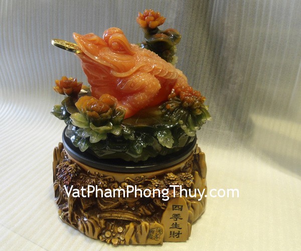 + Chất liệu và hoàn thiện: Thiềm thừ (cóc ba chân) bột đá màu (tại Việt Nam).