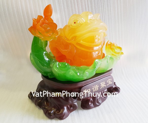 + Chất liệu và hoàn thiện: thiềm thừ, cóc ba chân bột đá màu (tại Việt Nam).