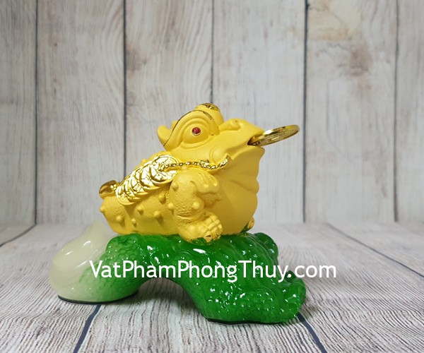 Thiềm thừ vàng kim sa ngậm xâu vàng trên lá cải LN107