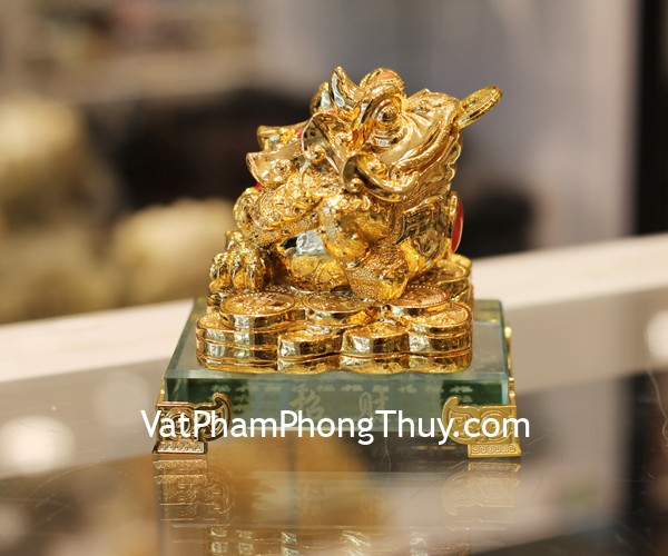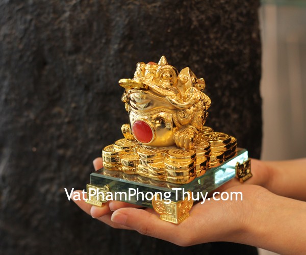 + Chất liệu và hoàn thiện: Thiềm thừ (cóc ba chân) bột đá mạ vàng, trên đế thủy tinh (tại Việt Nam)