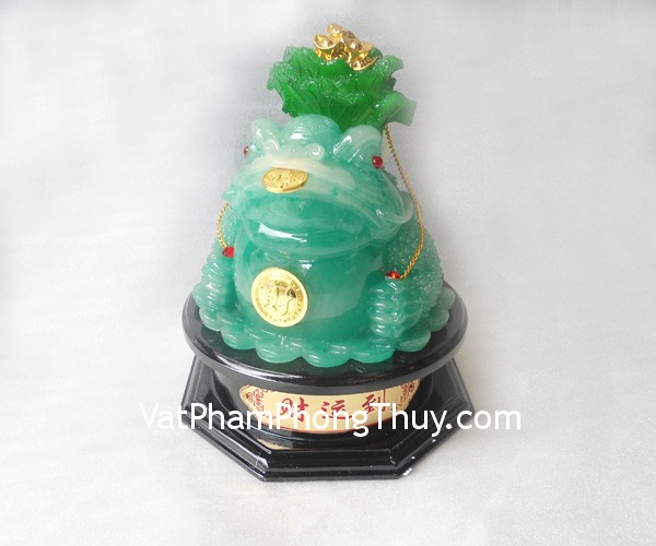 + Chất liệu và hoàn thiện: Tượng cóc ba chân (thiềm thừ) xanh cõng cải, bột đá màu (tại Việt Nam).