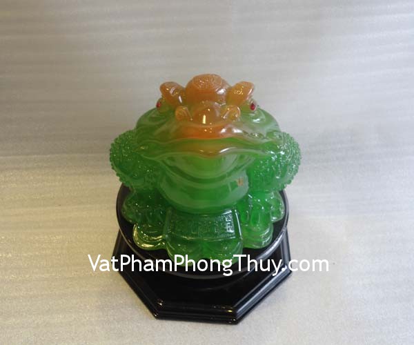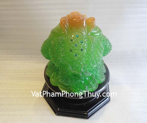 + Chất liệu và hoàn thiện: Thiềm thừ (cóc ba chân), đế gỗ xoay, bột đá màu (tại Việt Nam).