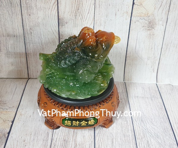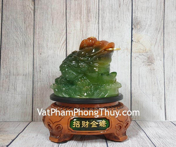 + Chất liệu và hoàn thiện: Thiềm thừ xanh ngọc đa sắc trên đế gỗ xoay bóng, bột đá màu cao cấp (tại Việt Nam).