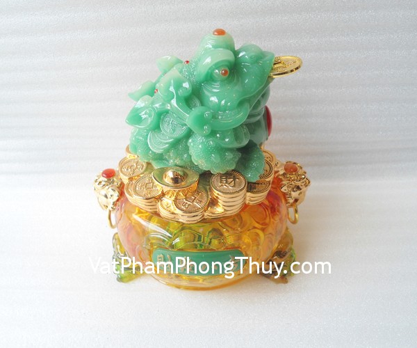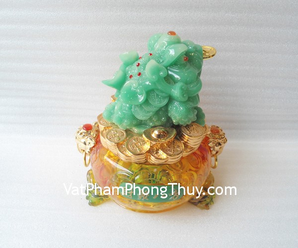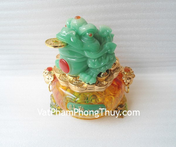 + Chất liệu và hoàn thiện: Thiềm thừ (cóc ba chân) bột đá mạ màu xanh, dạng đế xoay (tại Việt Nam)