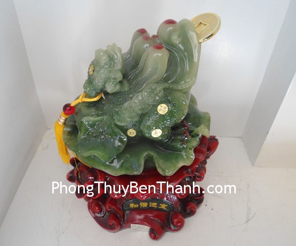 + Chất liệu và hoàn thiện: Thiềm thừ (cóc ba chân) bột đá màu (tại Việt Nam).