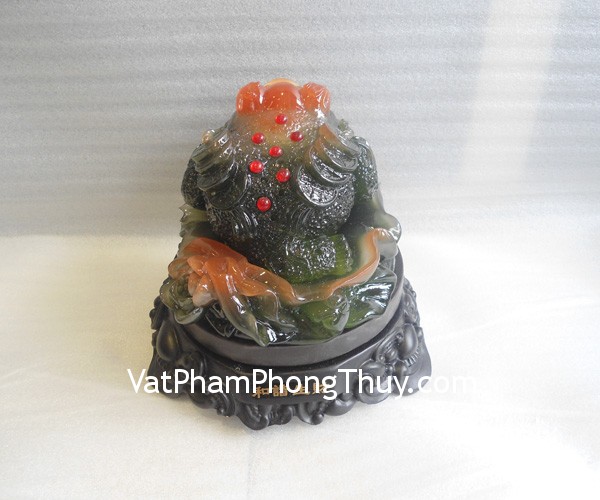 + Chất liệu và hoàn thiện: Thiềm thừ xanh(cóc ba chân) đế xoay, bột đá màu (tại Việt Nam)