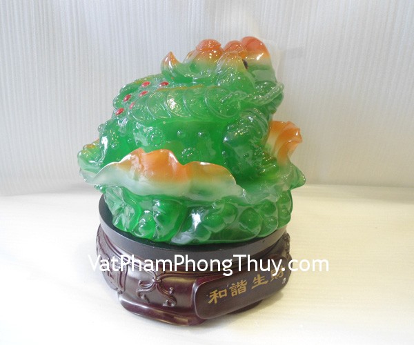 + Chất liệu và hoàn thiện: Thiềm thừ (cóc ba chân) bột đá màu (tại Việt Nam).