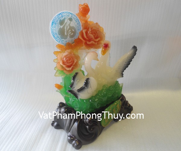 + Chất liệu và hoàn thiện: Chim thiên nga trắng bên hoa mẫu đơn, đế gỗ bằng bột đá (tại Việt Nam)