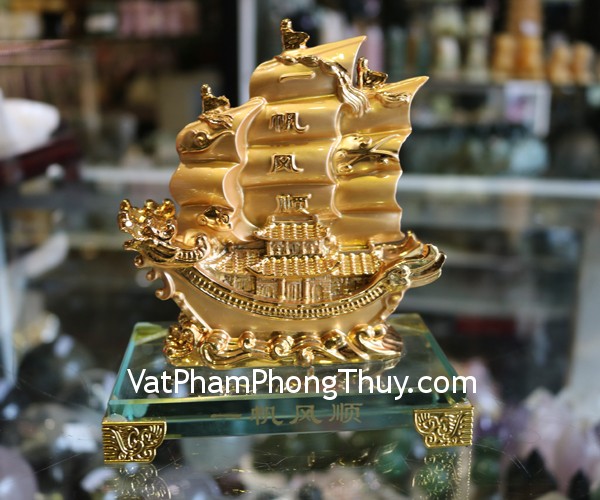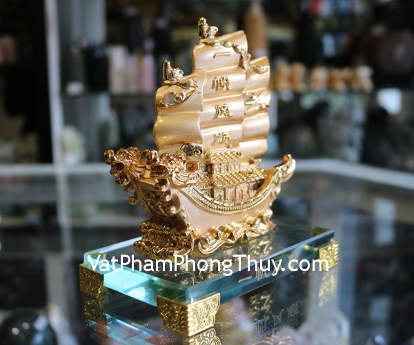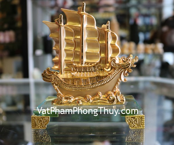 + Chất liệu và hoàn thiện: Thuyền buồm đầu rồng nhỏ bột đá mạ vàng non (tại Việt Nam).