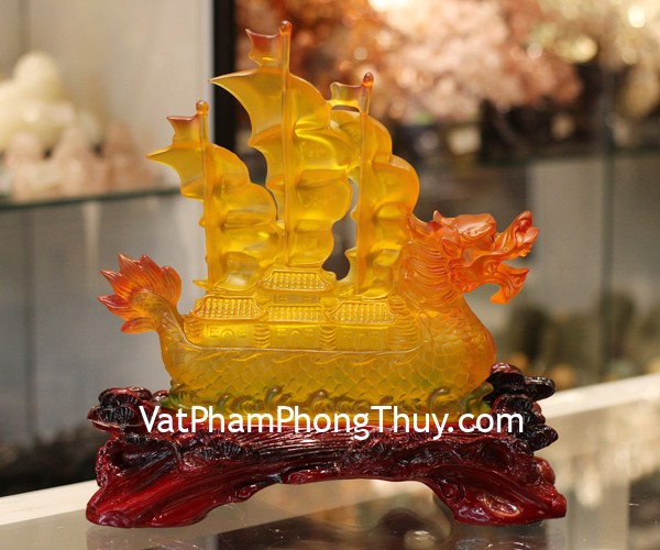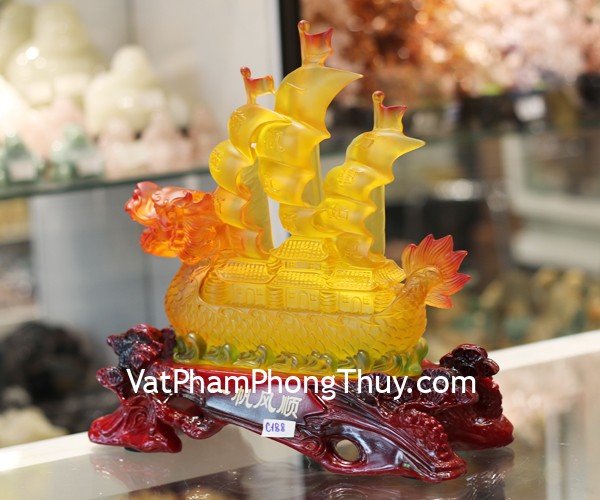 + Chất liệu và hoàn thiện: Thuyền buồm đầu rồng lưu ly, đế gỗ, hàng bột đá màu cao cấp (tại Việt Nam).