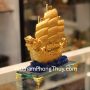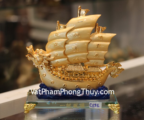 + Chất liệu và hoàn thiện: Thuyền buồm đầu rồng vàng lướt trên sóng xanh, đế thủy tinh, hàng bột đá mạ vàng non cao cấp (tại Việt Nam).