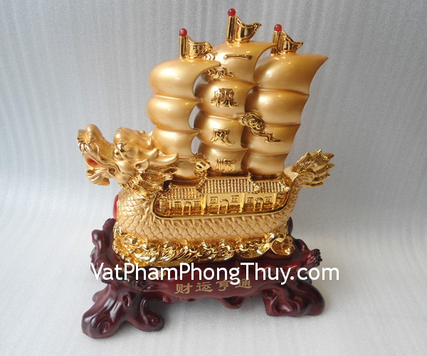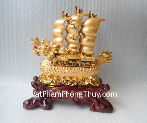 + Chất liệu và hoàn thiện: Thuyền buồm đầu rồng bột đá mạ vàng (tại Việt Nam).