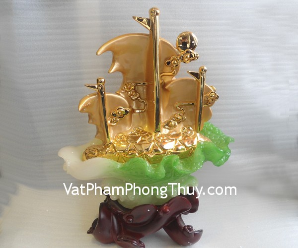 + Chất liệu và hoàn thiện: Thuyền buồm bột đá mạ vàng non trên bắp cải bột đá màu (tại Việt Nam).