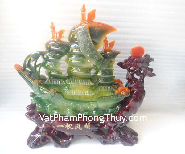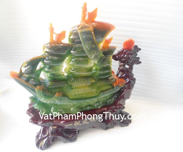 + Chất liệu và hoàn thiện: Thuyền buồm xanh lớn trên đế gỗ, bột đá màu (tại Việt Nam).