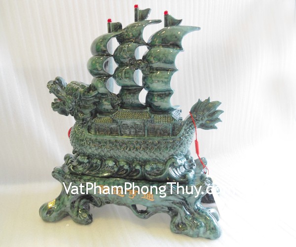 + Chất liệu và hoàn thiện: Thuyền buồm đầu rồng xanh vân mây, bột đá màu (tại Việt Nam).