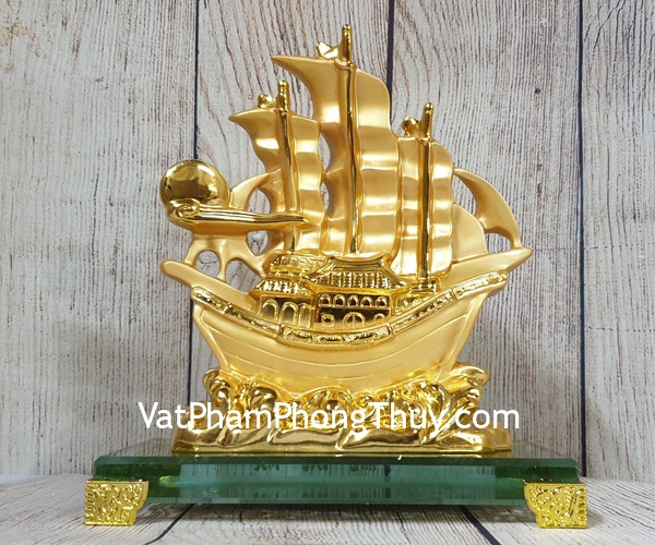 + Chất liệu và hoàn thiện: Thuyền buồm vàng lướt sóng trên đế thủy tinh, hàng bột đá mạ vàng cao cấp (tại Việt Nam).