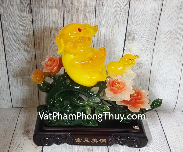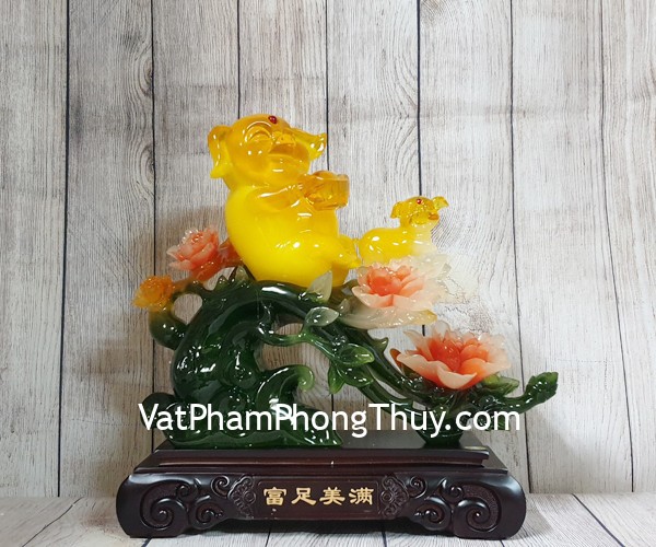 + Chất liệu và hoàn thiện: Tượng heo vàng ngọc trên nhánh mẫu đơn, bột đá màu cao cấp (tại Việt Nam).