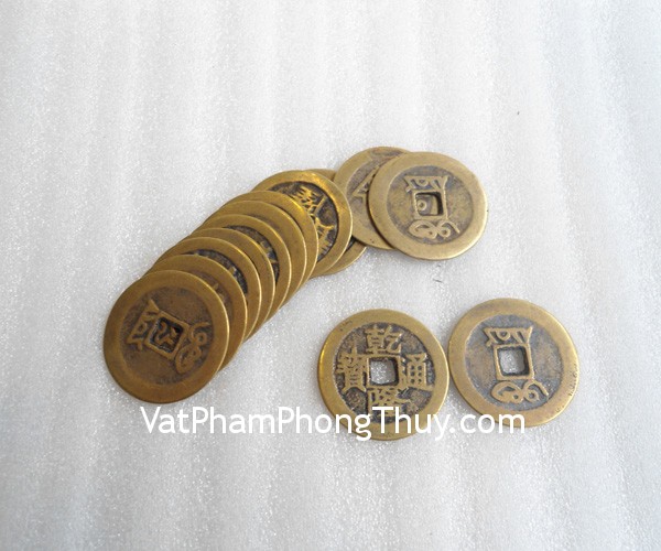 + Chất liệu và hoàn thiện: Tiền xu càn long bằng đồng giả cổ (tại Việt Nam).