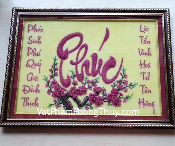 + Chất liệu và hoàn thiện : Tranh chữ Phúc – Tranh đá quý Lục Yên