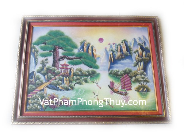 + Chất liệu và hoàn thiện : Tranh phong cảnh thuyền buồm – Tranh đá quý Lục Yên