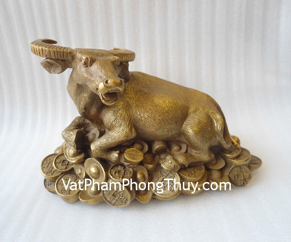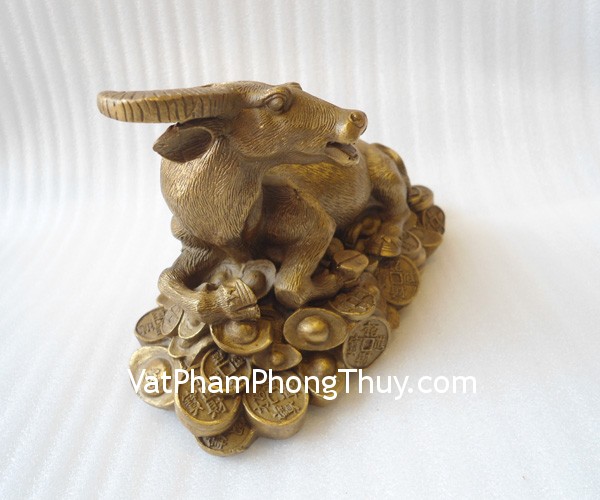 + Chất liệu và hoàn thiện: Trâu nằm trên đống tiền bằng đồng nguyên chất (tại Việt Nam)