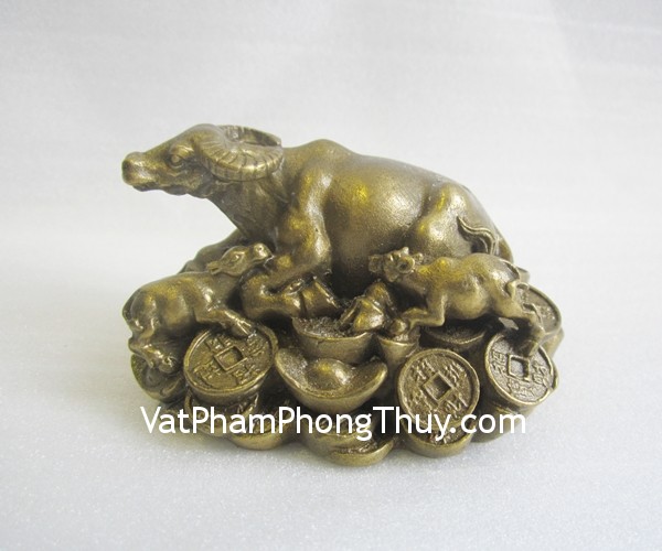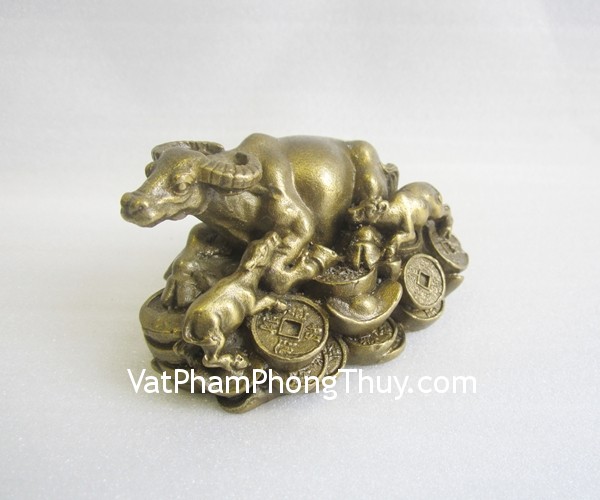 + Chất liệu và hoàn thiện: Trâu nằm trên đống tiền bằng đồng nguyên chất (tại Việt Nam)