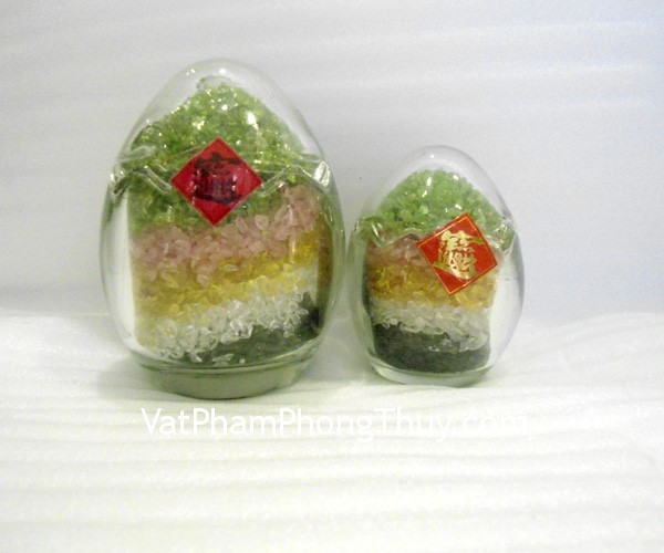 + Chất liệu và hoàn thiện: Trứng ngũ hành 5 loại đá thạch anh (tại Việt Nam).