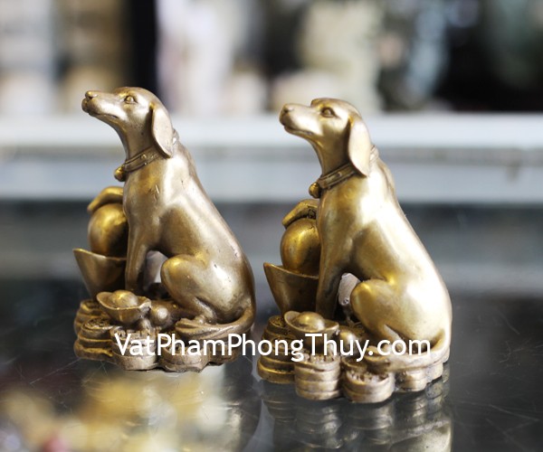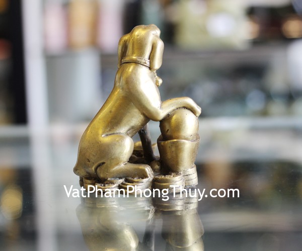 + Chất liệu và hoàn thiện: Tượng chó đồng bên kim nguyên bảo size nhỏ (tại Việt Nam)