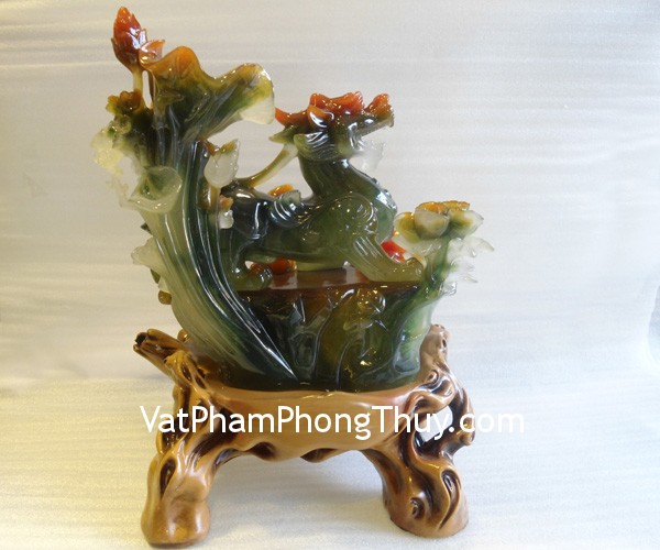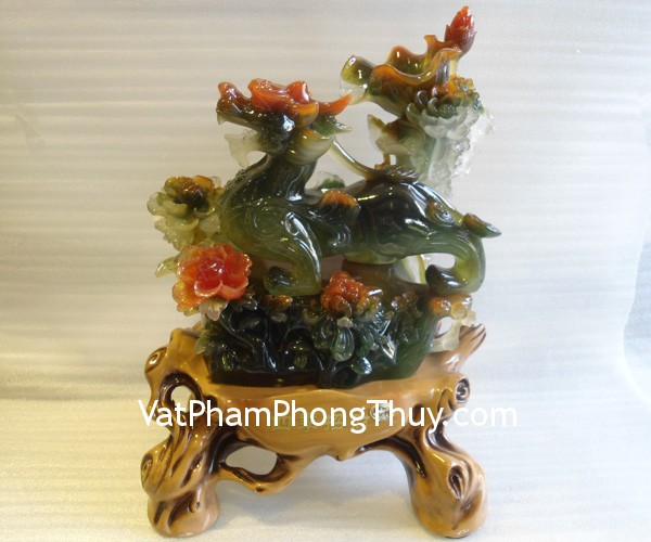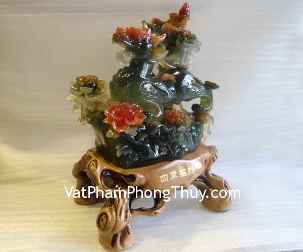 + Chất liệu và hoàn thiện : Tượng tỳ hưu xanh bên hoa tứ quý, bột đá màu (tại Việt Nam).