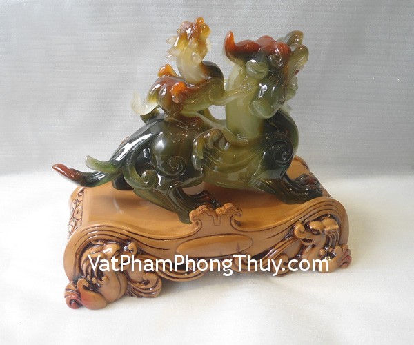 + Chất liệu và hoàn thiện: Tượng Tỳ hưu cõng con, bột đá màu xanh(tại Việt Nam).