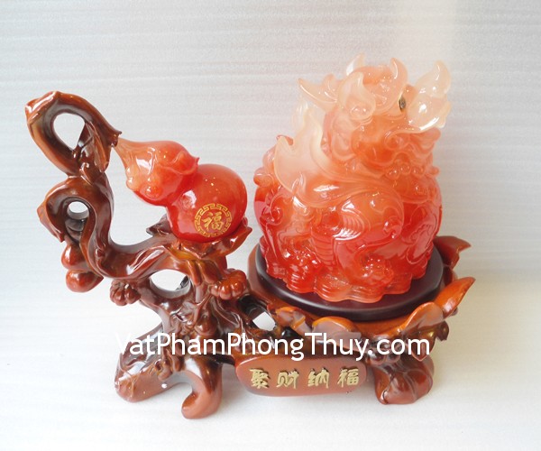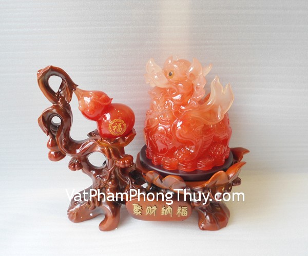 + Chất liệu và hoàn thiện: Tượng Tỳ hưu xanh xoay bên hồ lô đỏ , bột đá màu (tại Việt Nam).
