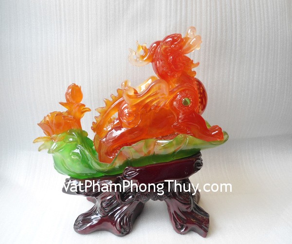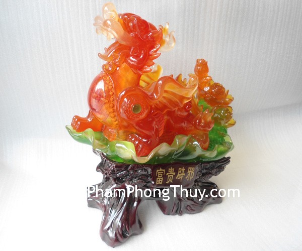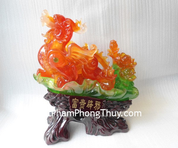 + Chất liệu và hoàn thiện: Tỳ hưu bằng bột đá màu trên cây lá sen (tại Việt Nam).