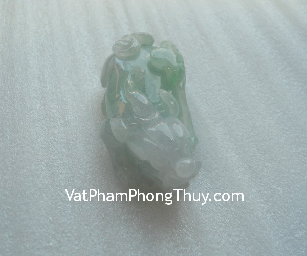 + Chất liệu và hoàn thiện: Tỳ hưu ngọc Phỉ Thúy cõng gậy như ý vân trắng xanh lý (tại Việt Nam).