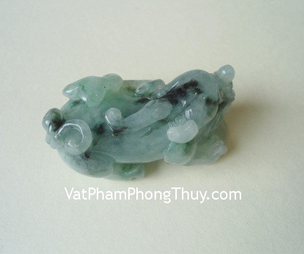 + Chất liệu và hoàn thiện: Tỳ hưu ngọc Phỉ Thúy cõng gậy như ý vân trắng xanh lý (tại Việt Nam).