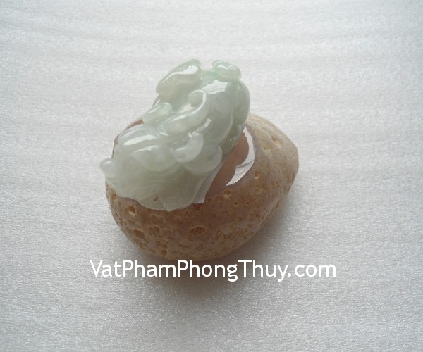 + Chất liệu và hoàn thiện: Tỳ hưu ngọc Phỉ Thúy cõng gậy như ý vân trắng xanh lý (tại Việt Nam).
